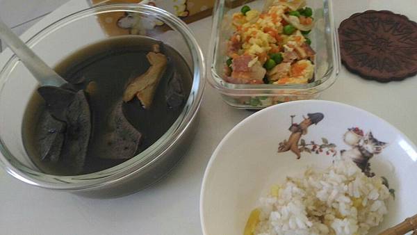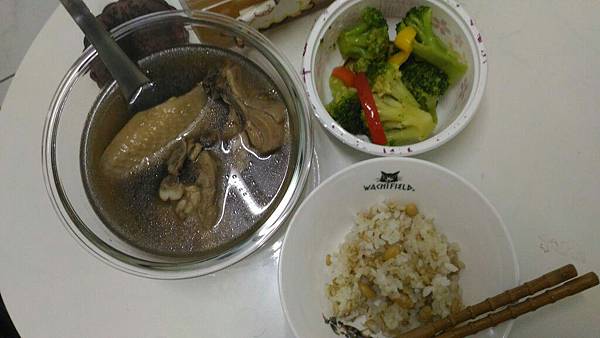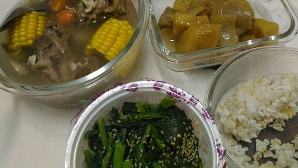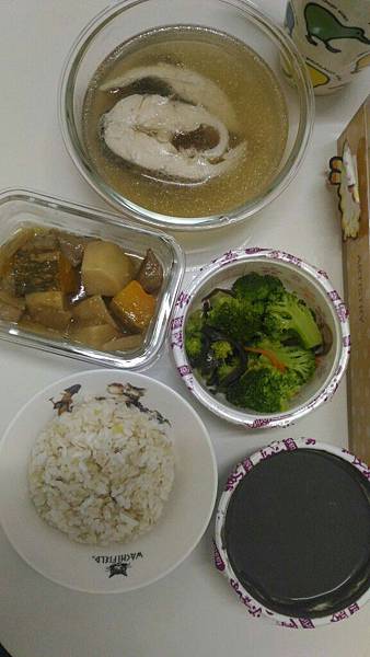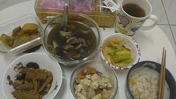 因為他早餐也是給一菜一湯一飯,但我個人不喜歡早餐吃中式的,所以都自己另外弄早餐,而早餐菜色就併到中午或晚上吃,感覺就豐富了點......