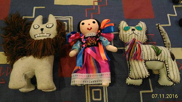 左右是羊毛氈的手工玩偶,但並不是戳戳戳的那種羊毛氈,是一片的羊毛氈去剪綵縫合的玩偶,這形容很抽象...一隻約300TWD, 高25cm